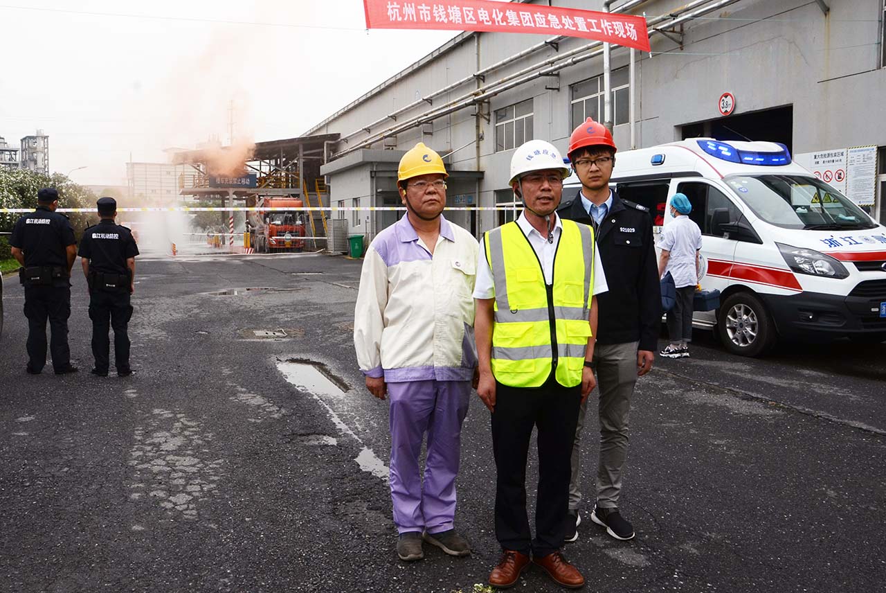 6月4日上午,杭州市舉行2021年全市大面積停電事件應(yīng)急聯(lián)合演練,集團公司作為作為僅有的兩處向總指揮部進行實況直播的現(xiàn)場處置點之一,參加了化工企業(yè)應(yīng)急處置環(huán)節(jié)的演練。本次聯(lián)合演練由市發(fā)改委、市應(yīng)急管理局聯(lián)合主辦,國網(wǎng)杭州供電公司承辦,市政府戴建平常務(wù)副市長參加聯(lián)合演練并擔(dān)任聯(lián)合演練總指揮,錢塘區(qū)應(yīng)急管理局副局長孔鐵林擔(dān)任集團公司應(yīng)急處置演練現(xiàn)場總指揮。