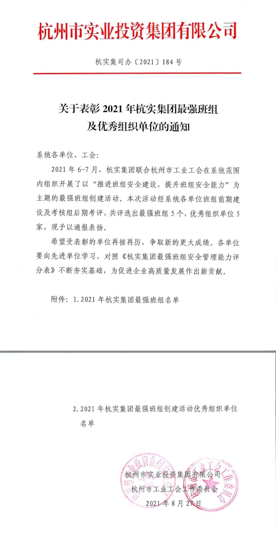 近日,在杭實集團、杭州市工業(yè)工會聯(lián)合開展的,以“推進班組安全建設(shè),提升班組安全能力”為主題的最強班組創(chuàng)建活動中,杭州電化集團有限公司氯堿分公司氯裝置班組脫穎而出,榮獲“最強班組”榮譽稱號,集團公司斬獲“優(yōu)秀組織單位”榮譽稱號。